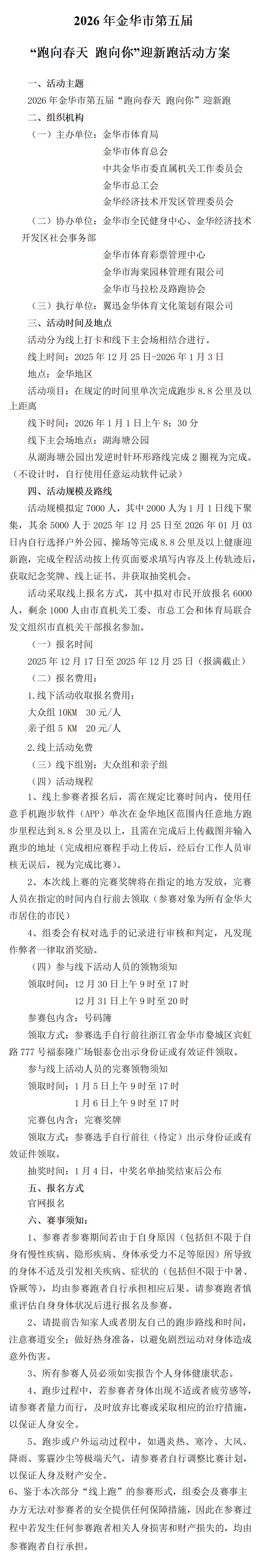 Rules - - 2026年金华市第5届“跑向春天 跑向你”迎新跑