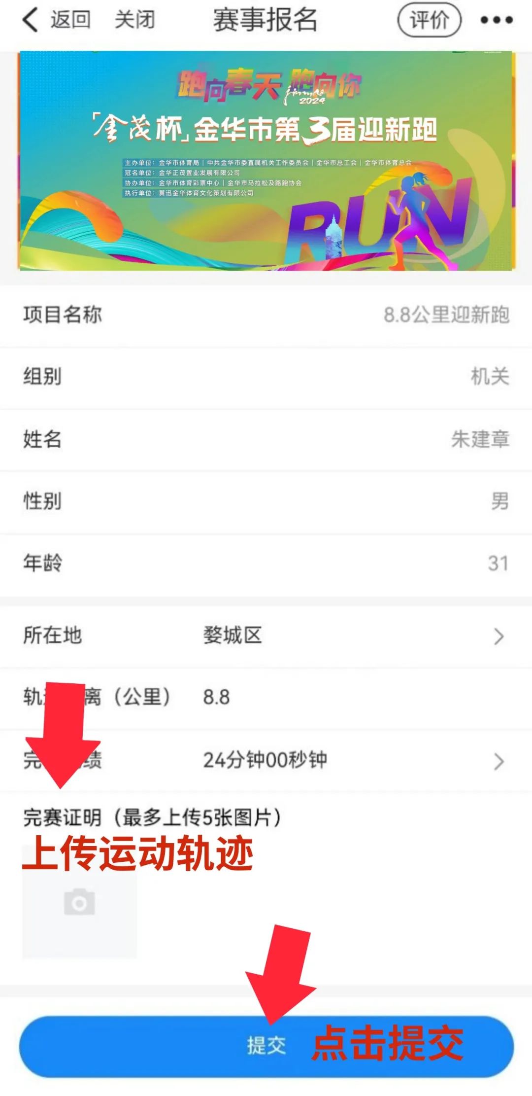 在1月1日至3日内在金华大市范围内自行选择户外公园、操场等完成8.8公里及以上健康迎新跑,完成全程活动按上传页面要求填写内容及上传轨迹后,获取纪念奖牌和活动服装。线上证书、